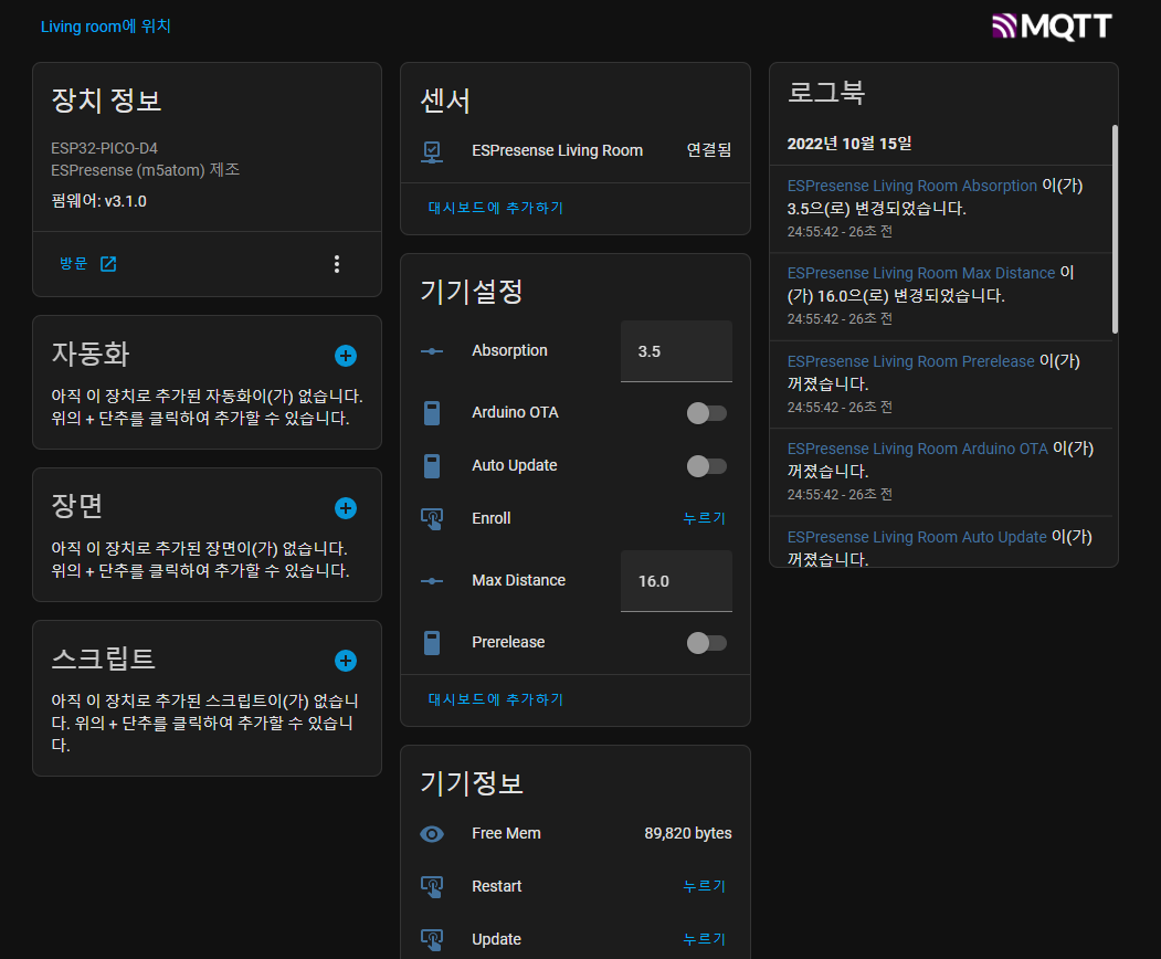 ESPresense 3.0 이상버전에서 iOS 재실이 지원된다는 내용과 설정방법을 친절하게 올려주셨다.