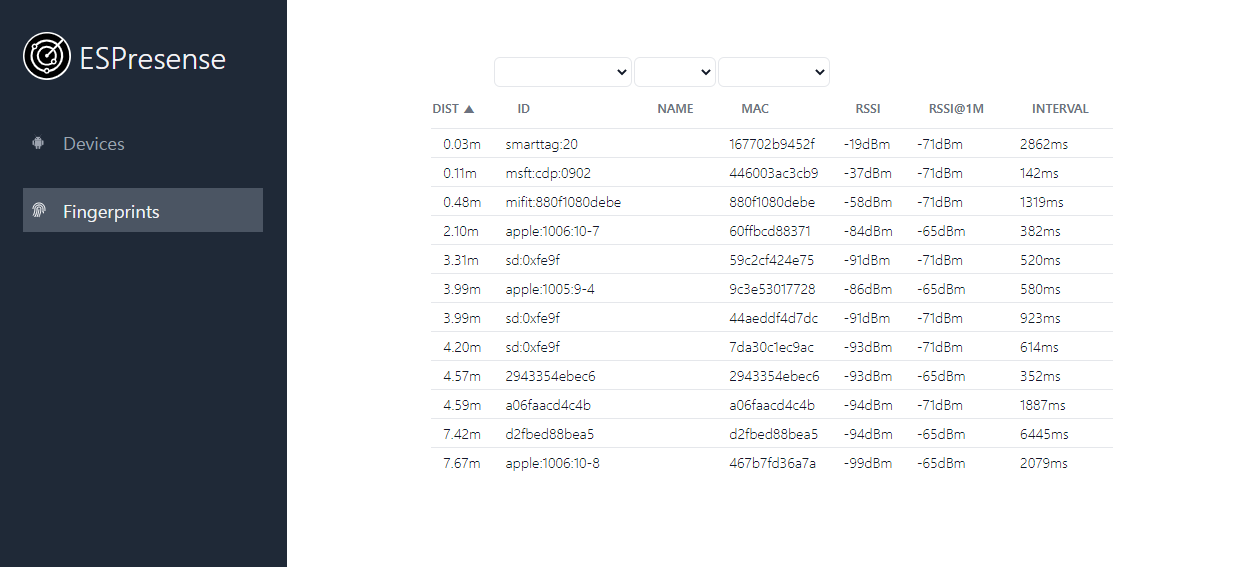 http://{ESPresense IP 주소}/ui/#/fingerprints