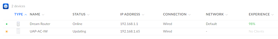 UNIFI DEVICES에 Dream Router 아래에 UAP-AC-IW가 추가된 것이 확인된다.